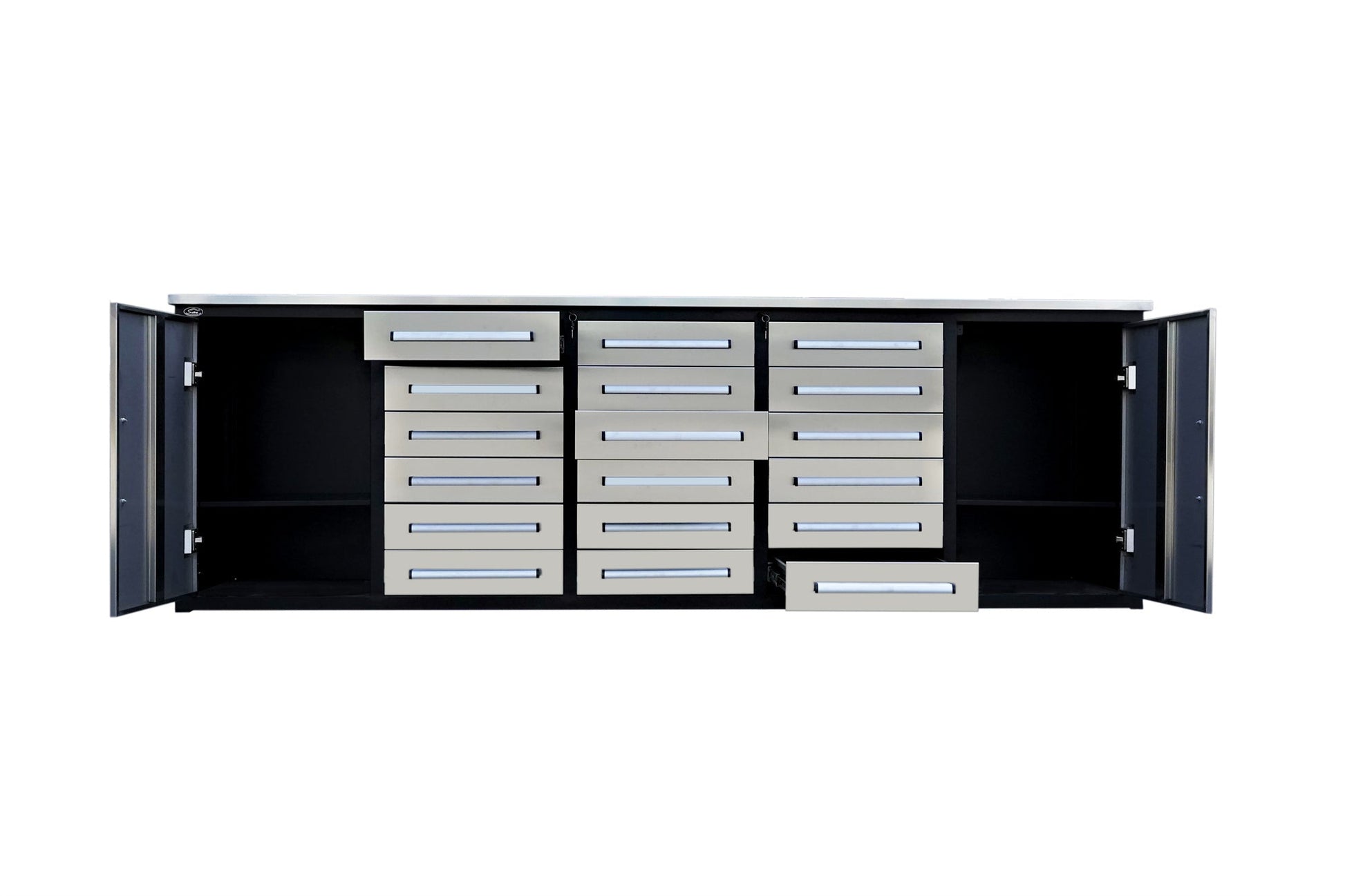 10ft Storage Cabinet with Workbench (18 Drawers & 2 Cabinets)