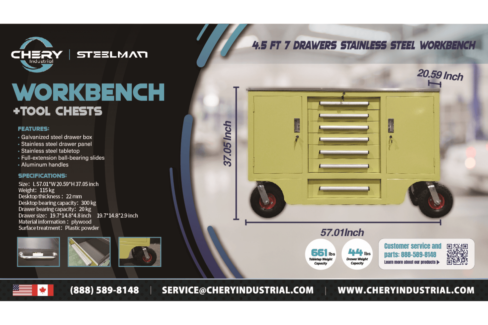 4.5ft Storage Cabinet (7 Drawers & 2 Cabinets)