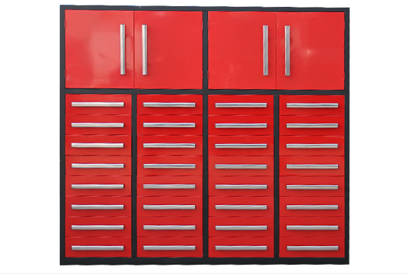 The 7ft Storage Cabinet featuring 32 drawers is designed for durability and long-term use. Its ample drawer capacity allows for efficient organization and storage of your tools and equipment. Additionally, it includes two spacious upper cabinets ideal for larger tools or bulky items. Available in blue and red, this cabinet can complement your workspace perfectly. Invest in this reliable storage solution today.